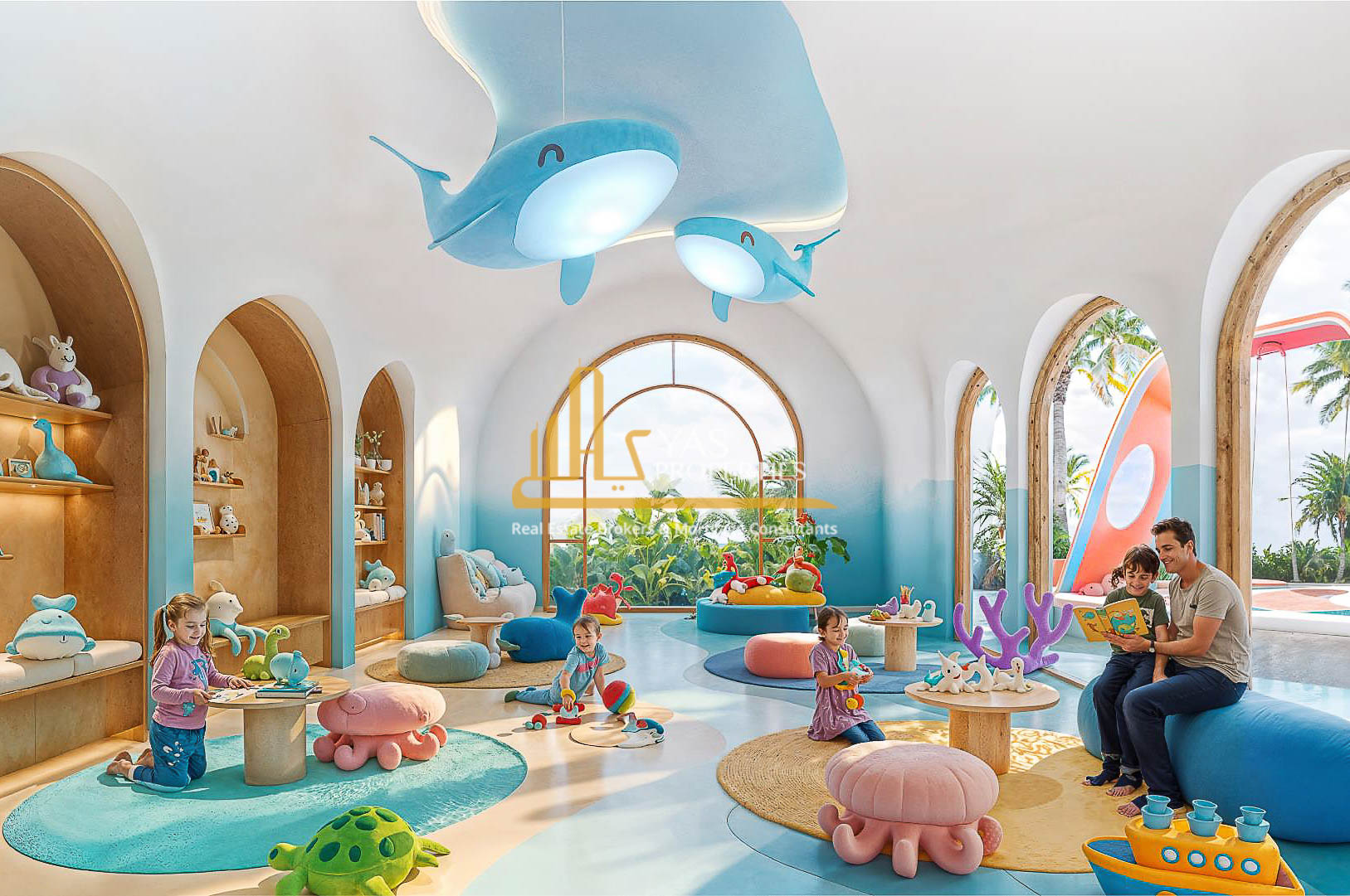 Family-friendly features including kids’ play areas and daycare